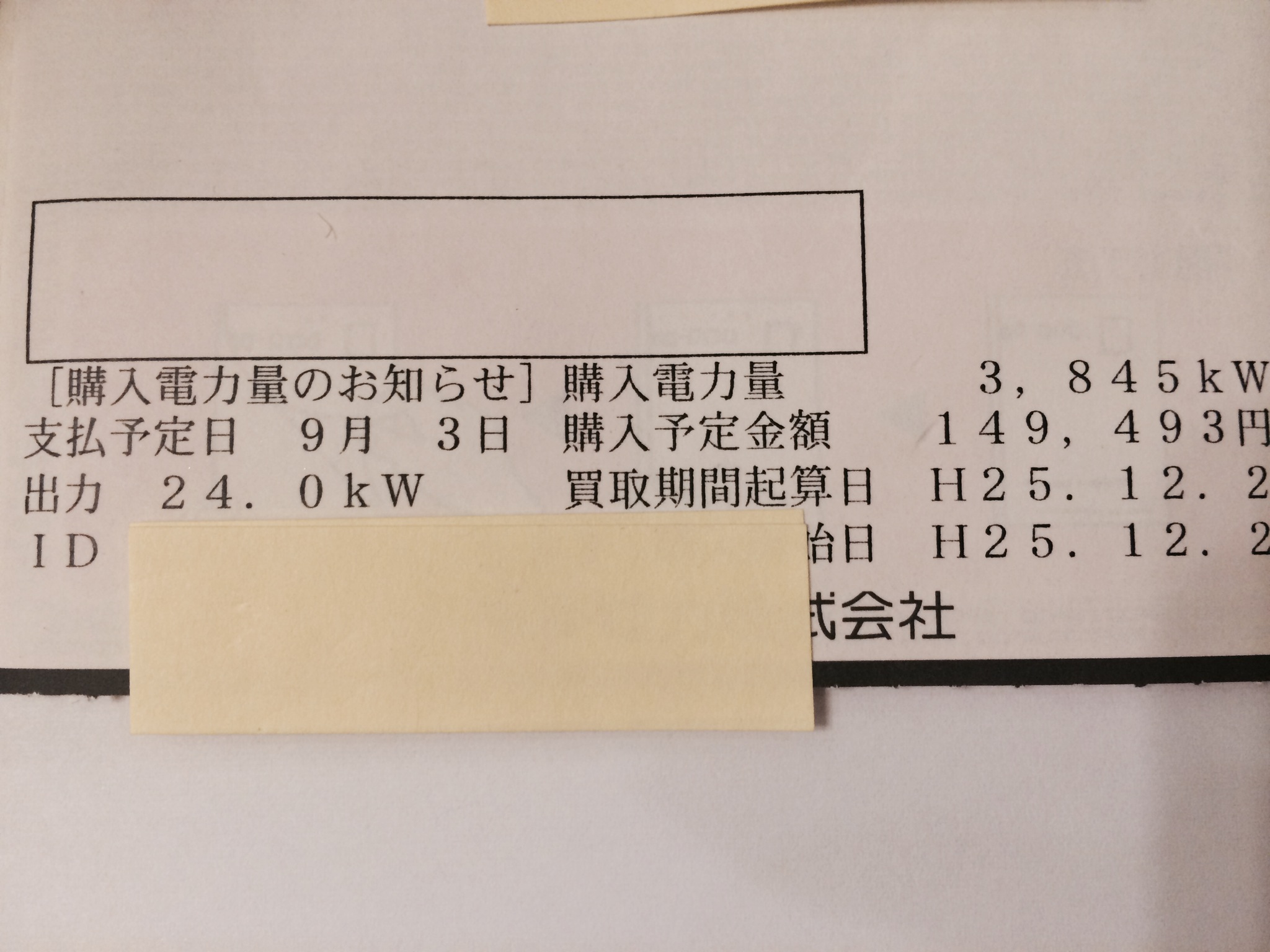電力会社からのお知らせの写真アップしましたのでご確認くださればと思います。